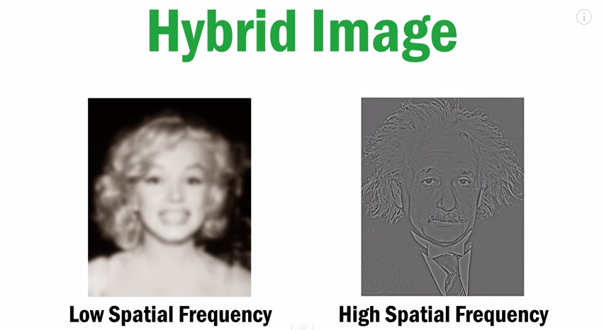 彼女はこの二つの画像をそれぞれ加工し、空間周波数が全く異なるものにしました。
