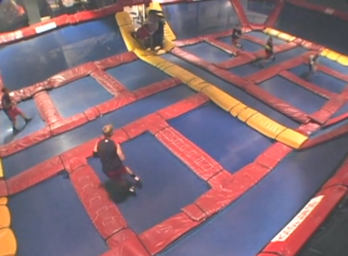 見て頂ければ分かるようにトランポリンの上でドッジボールをするという簡単な仕組み。