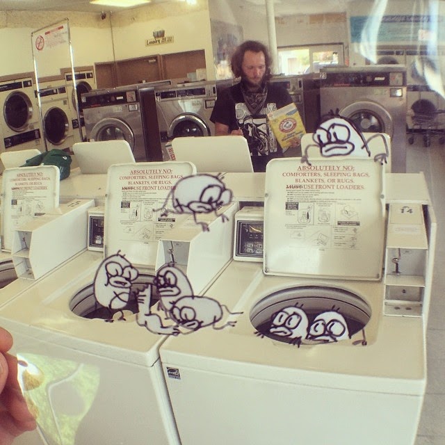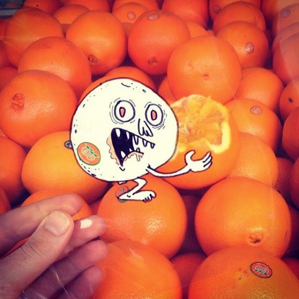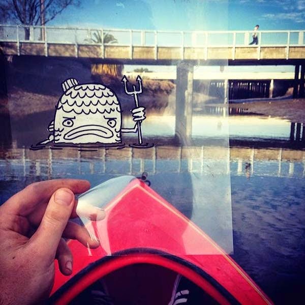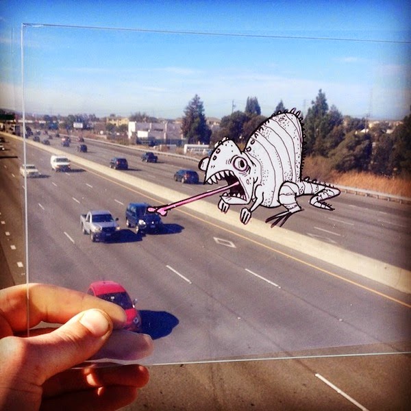 彼は想像力を脹らませ、透明なフィルムにキャラクターを描きます。