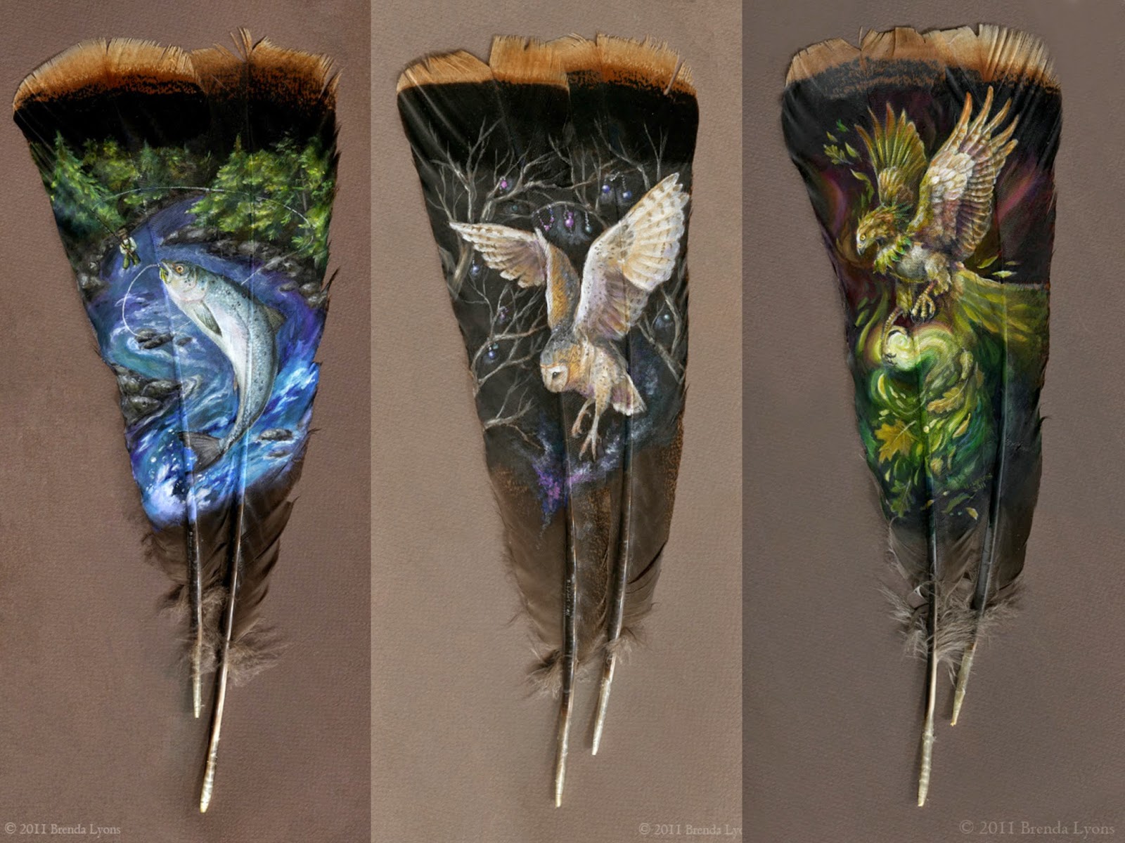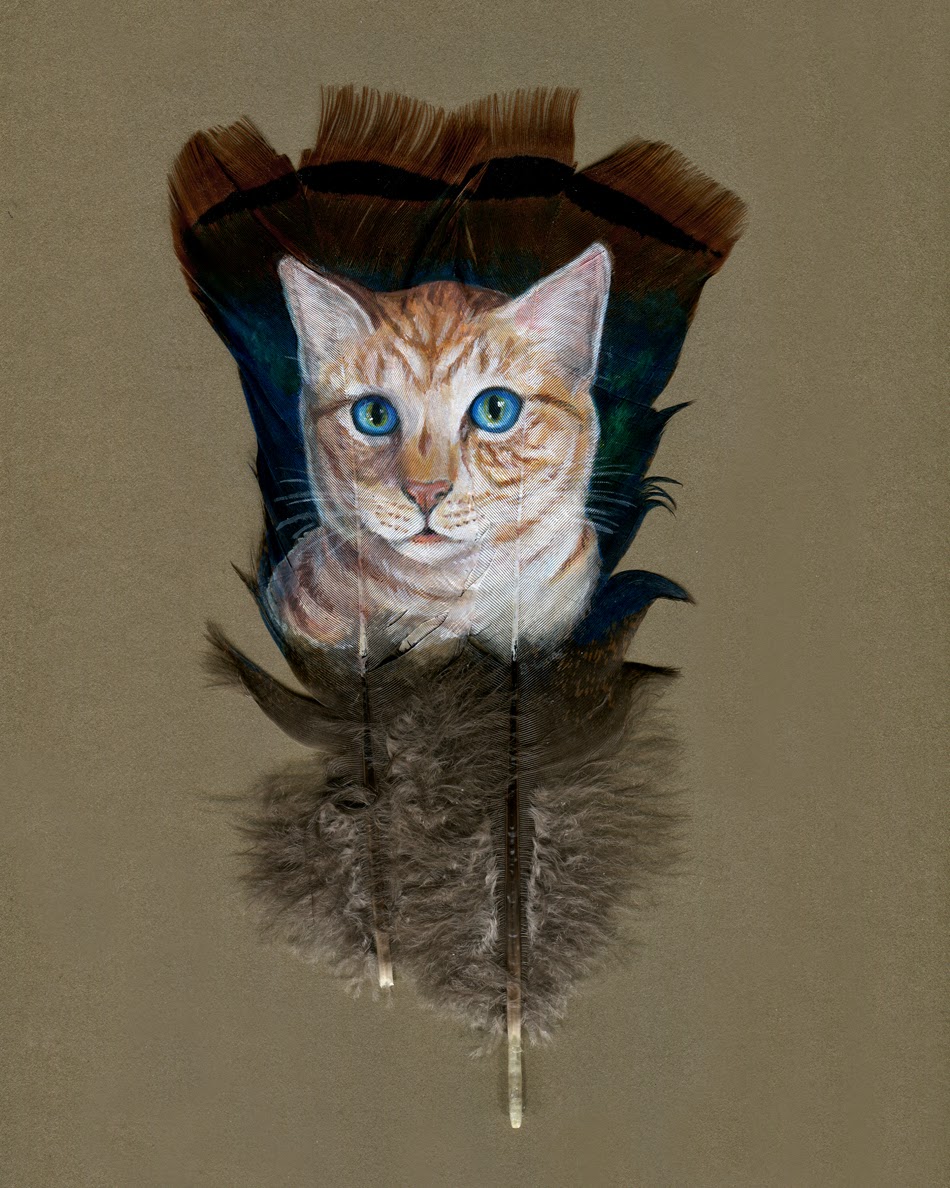 信じられないことに彼女は七面鳥の羽をキャンパスにして肖像画を描く。