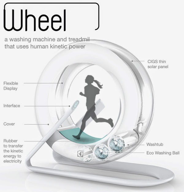 このWheelというランニングマシーンには人力で電気を発電し、内蔵の洗濯機を稼働することができます。
