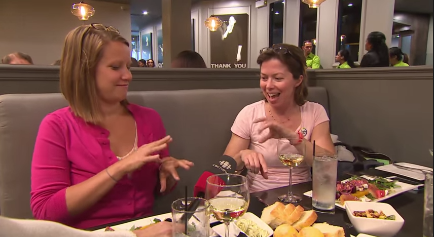 科学 2014年8月7日 ▶ 聴覚障害者(ろう者)が働くレストランが素敵! ここはカナダのトロントにある「Signs」というレストラン。 カナダで初めて、聴覚障害者(ろう者)をウェイター・ウエイトレスにした素敵なレストランです。 ろう者の方はもちろん、手話ができない方でも気軽に足を運べ、食事を楽しめるそうです。 メニューは「カンニングペーパー」になっており、注文と同時に手話を学べます。 とても素敵なお店ですね! 日本にもろう者の方々だけで運営されているレストランはあるのでしょうか? 是非行ってみたいものです。 情報お待ちしております。