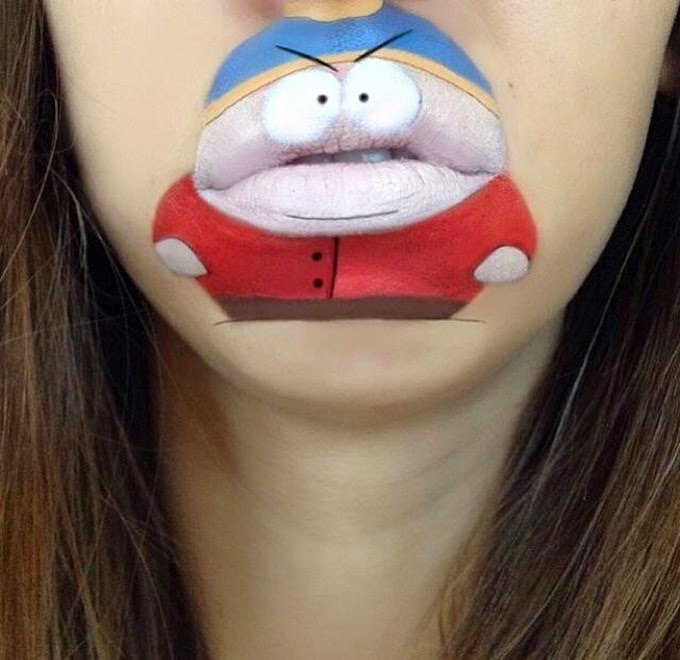 彼女は口の周りに有名なキャラクターのイラストを描いて、口とキャラクターを一体化させました。