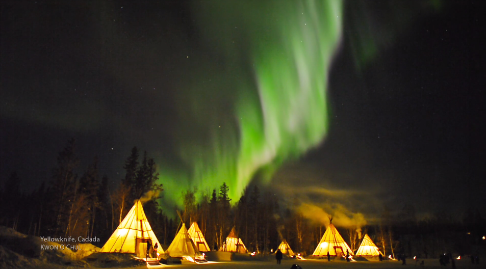私はTVで短い時間しかオーロラを見たことがないのでこの美しい映像には感動しました。