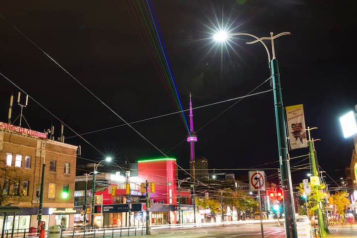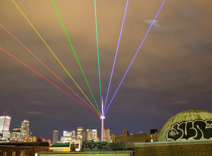 SOURCE:Powerful Laser Rainbow Beams Onto Toronto’s CN Tower