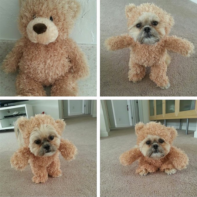 Warning: Trying to access array offset on null in /home/noizmoon/noizmoon.com/public_html/wp-content/themes/anima/includes/loop.php on line 298 2014年11月11日 2017年1月31日 動物 すごい事を考える方がいるものです(*´艸`*) なんと市販されているテディベアのぬいぐるみ改造して、ペットのシーズーに着せてしまった動画! 作り方は紹介されていませんが、きっと顔の部分と背中の部分を切り取っただけかな? テディベアを着たシーズーが寄ってくる様子がとても可愛いです(*´艸`*) 11秒程の短い動画ですがもっと見たくなります! こっ、これは作るしかない・・・(●´ω`●)