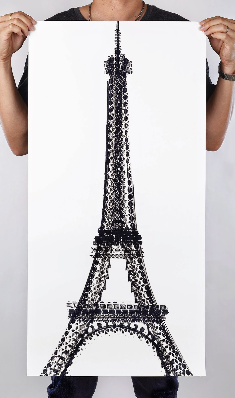 彼は自転車のタイヤを使い、世界にある有名建築物の絵を描きあげます。