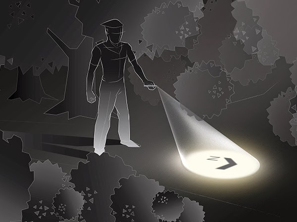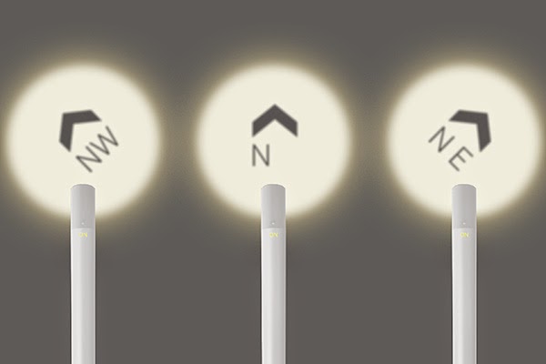 暗闇でライトを点けると光の先にコンパスを表示してくれます。