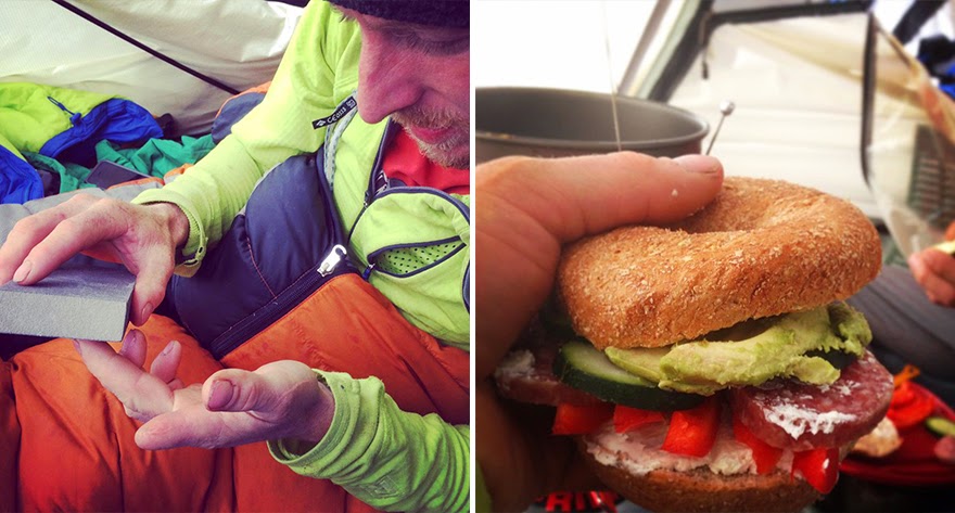 写真を見て頂ければわかりますが、崖にテントを張って睡眠をとっています。