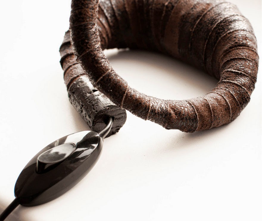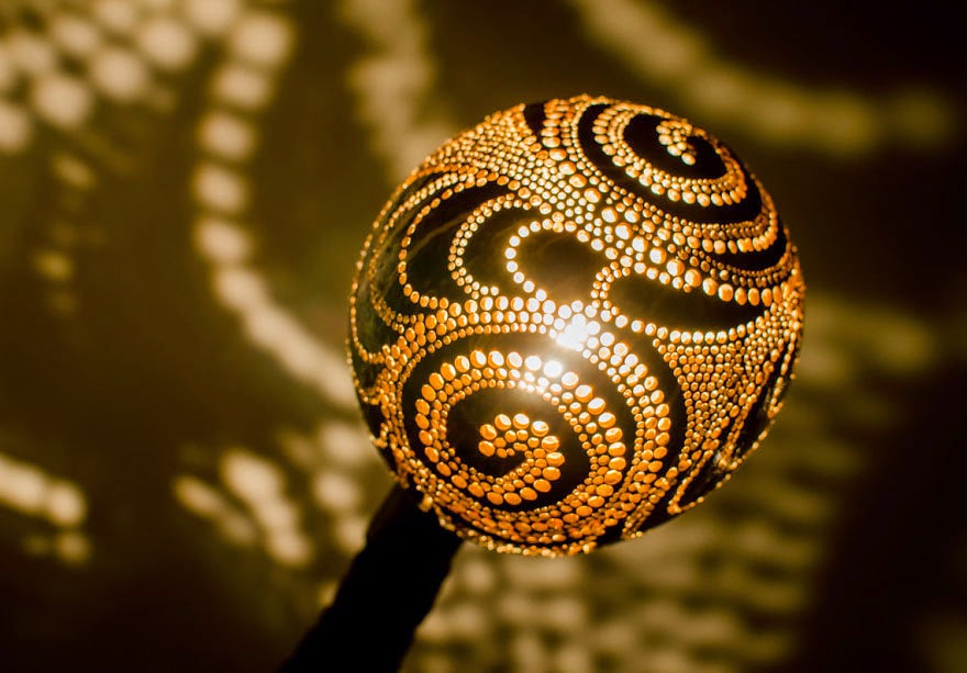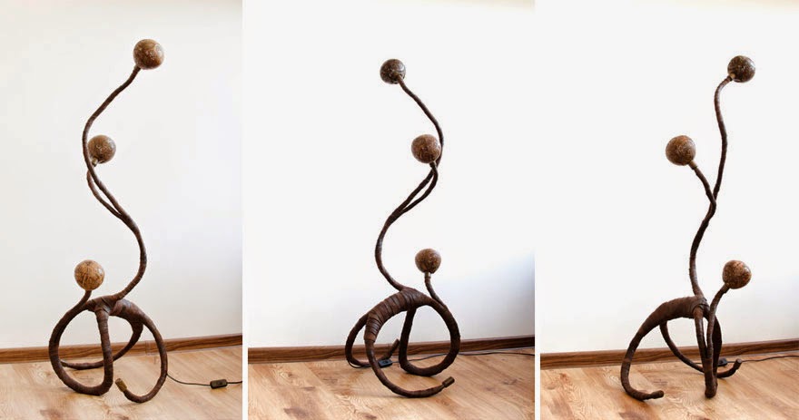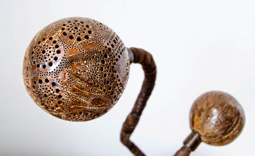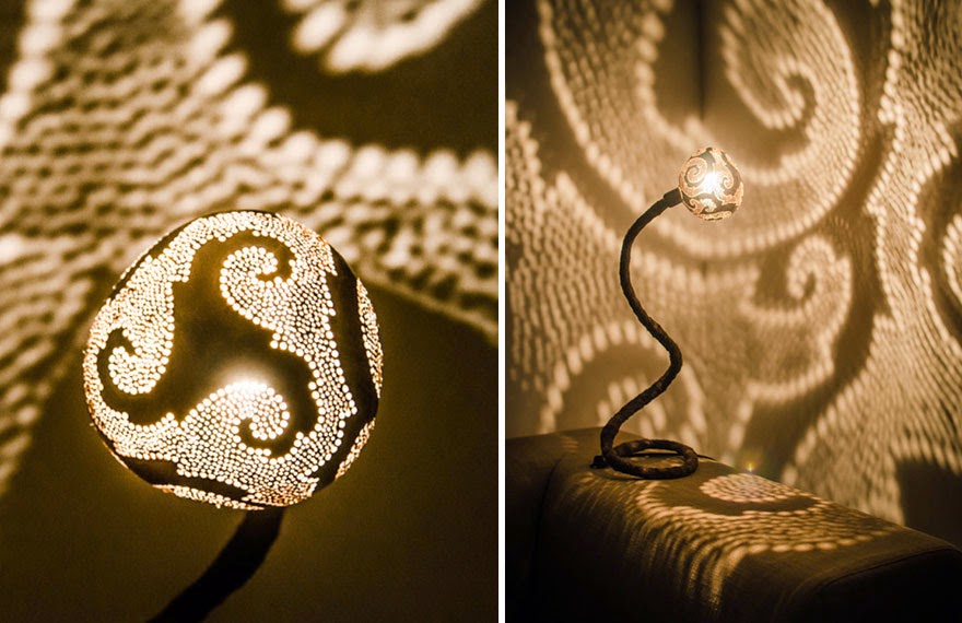 Vainius氏がココナッツで制作したオリジナルランプです。