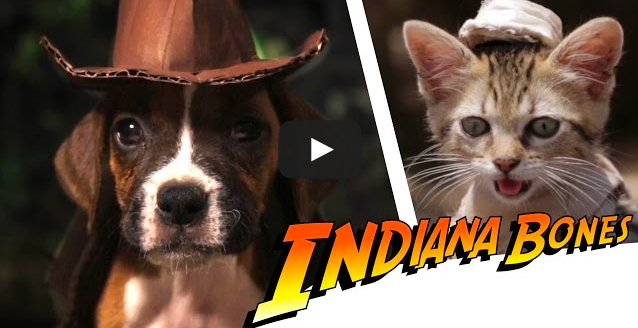 アドベンチャー系の映画で有名な「インディー・ジョーンズ」をわんちゃんで再現した作品。