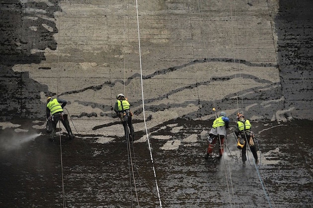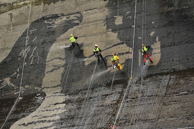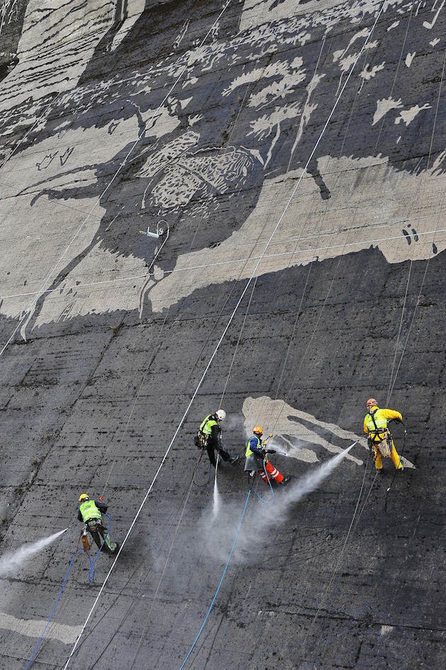 しかしこの高圧洗浄機を使ったアートは、塗料を一切使用せず汚れを落とすことで色を創り上げます。