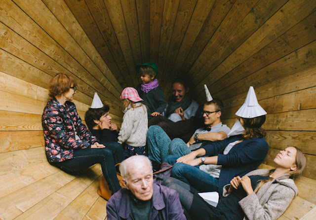 この木製巨大メガホンの中に入ると、自然の静かな音がとても良く聞こえるとか。