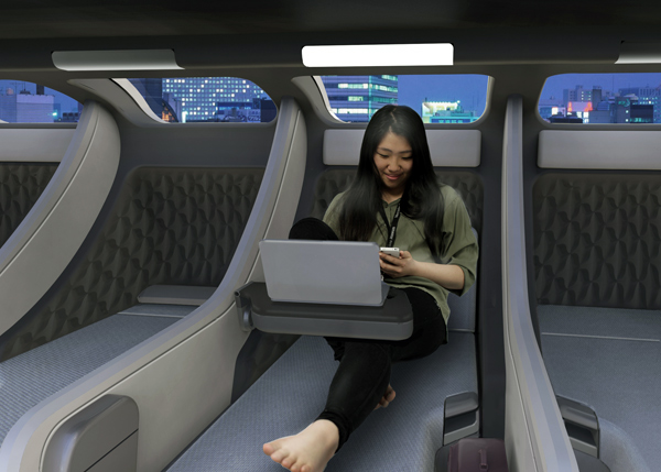 各車両にはシャワー室が用意されており、まるでカプセルホテルを思わせる新幹線です。